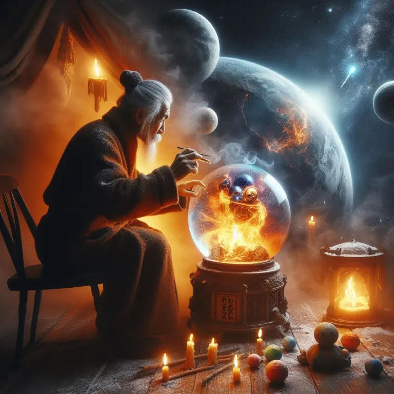 Incantations danced erratically around the dimly lit room as meteors zoomed in the far distance across the dazzling night sky. Abbefore’s gaze was fixed on an orb perched on a pedestal at his feet, and within the orb’s walls, there appeared to be an electric storm brewing. Flecks of lightning erupted in jagged spurts while a fine silvery mist clouded the interior shell. The effect was mesmerizing, and even Abbefore was not immune to its hypnotic effects. But there was a grand mission at hand, one that could not be forgotten or dismissed without a direct, volatile impact on the entire universe. Abbefore had been assigned to this mission, and he knew that if he did not fail, there was immense hope in restoring the current solar system and perhaps even the surrounding ones as well. Everything was dependent on him now. All the other great wizards were either captured or expired, sent into the great unknown. Fortunately, young Darla had made it out, and as far as he could tell, she was still alive. He could always sense her presence no matter where she was or what world she was in; tied together by an invisible thread, not even the Detainers could hide her from his view.